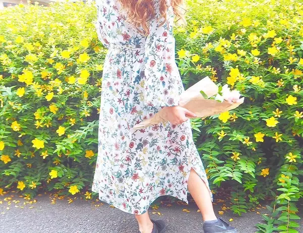 そっと春を待つ 大人可愛い 花柄 ボタニカル柄 のファッションコーディネート キナリノ ファッション ワンピース ファッション 古着コーデ レディース